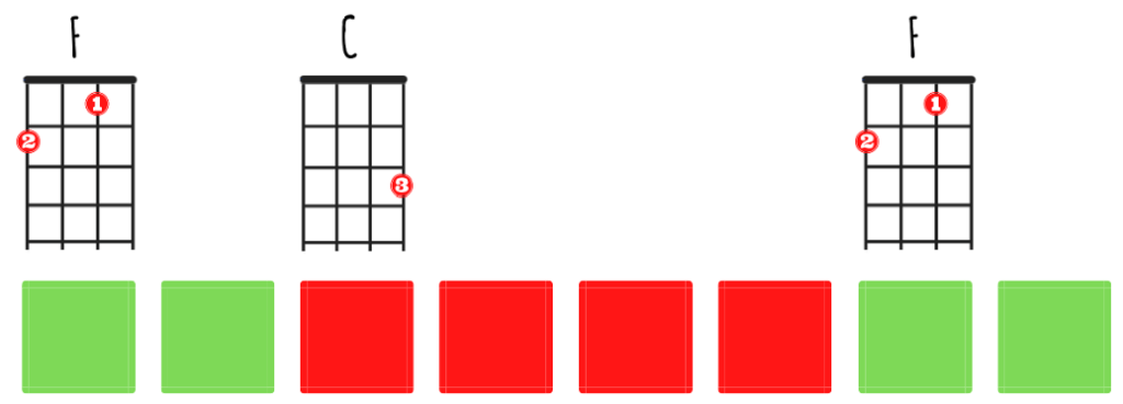 Els acords que treballarem en aquesta cançó són el de Do Major (C) i el de Fa Major (F):