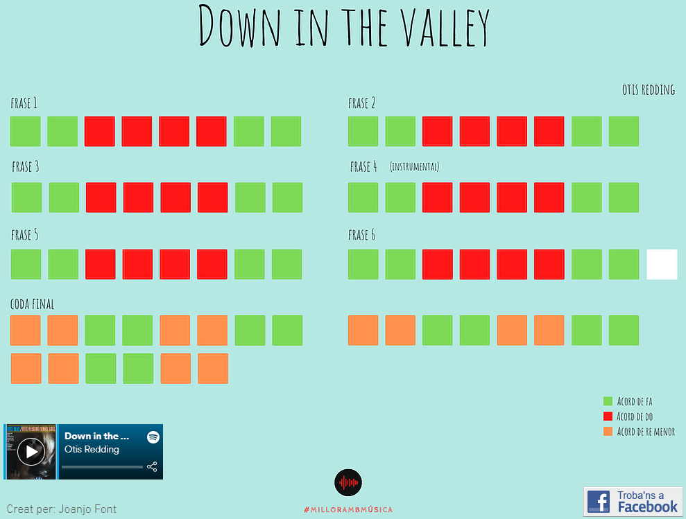 Avui us proposo una cançó per iniciar-se en l’acompanyament amb acords d’una manera fàcil. Es tracta del tema “Down in the Valley” (en la versió d’Otis Redding). Nosaltres treballem a classe una proposta que hem trobat al llibre “Ukelele para principiantes”, de Will Grove-White i que ens funciona força bé.