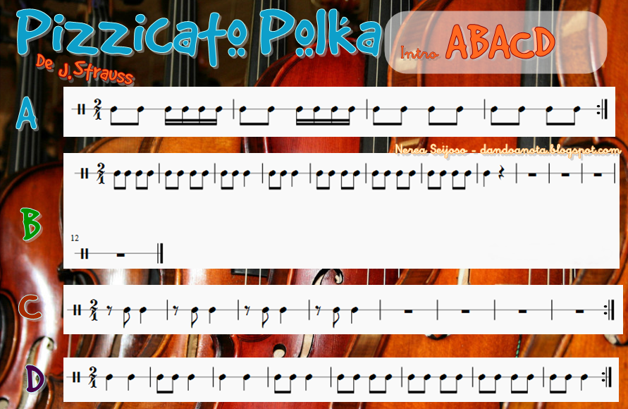 Es tracta d’un ritmegrama d’una peça composta pels germans Johann Strauss i Josef Strauss l’any 1869. La polca és una dansa popular, originària de la República Txeca, en compàs de 2/4 i ritme ràpid.